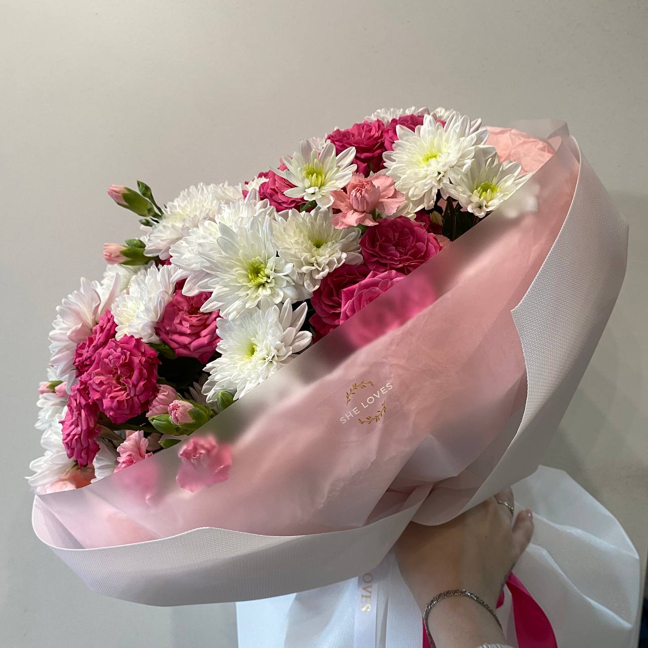 Пышный букет с яркими розами